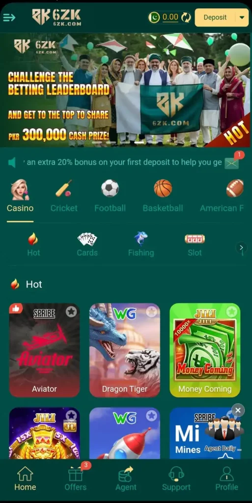 Want to earn money even if you are not into gaming? The platform offers a daily salary agent. By inviting new players, you can earn daily rebates, starting from PKR 200 and going up to around PKR 1000 or even more. The app is perfect for those who are looking to build income. The more you invite your friends and the more you earn.